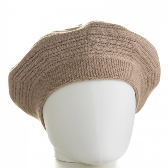 Comandă online o Bereta bej cu model gen tricotaj cu cercuri concentrice, din lana cu livrare rapidă prin curier sau la easybox!