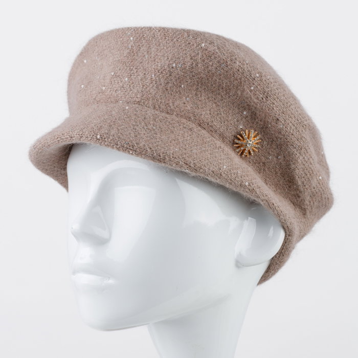 Captusita la interior cu blanita sintetica, are o decoratiune metalica ce se poate scoate. Material: amestec angora (50%) si acril (50%) Este talie unica Dimensiuni: diametru interior bereta 17 cm ( locul pe un de intra capul), diametru exterior…