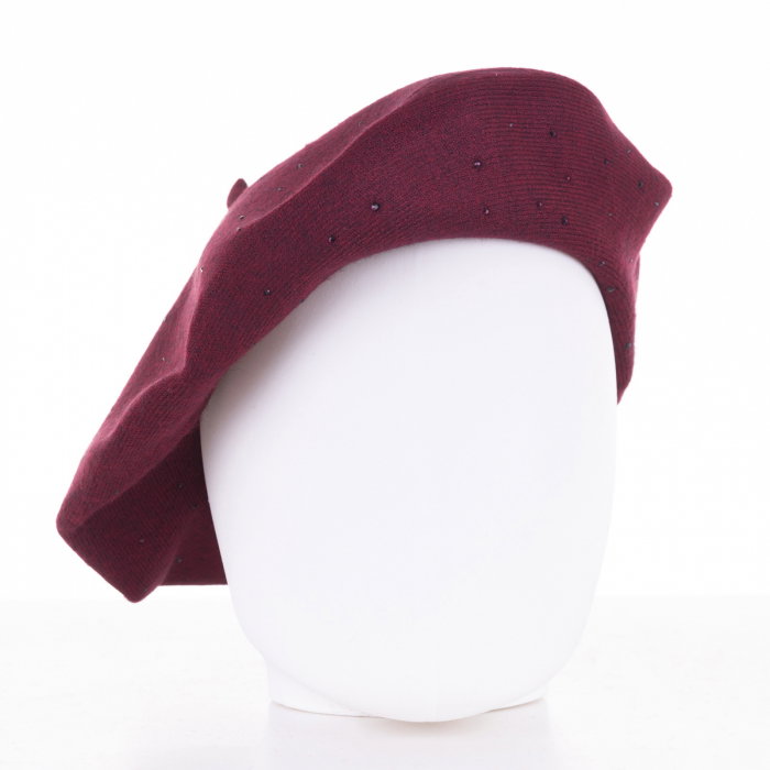 Comandă online o Bereta bordo chic, cu strasuri foarte fine aplicate pe toata suprafata, din bumbac si lana cu livrare rapidă prin curier sau la easybox!