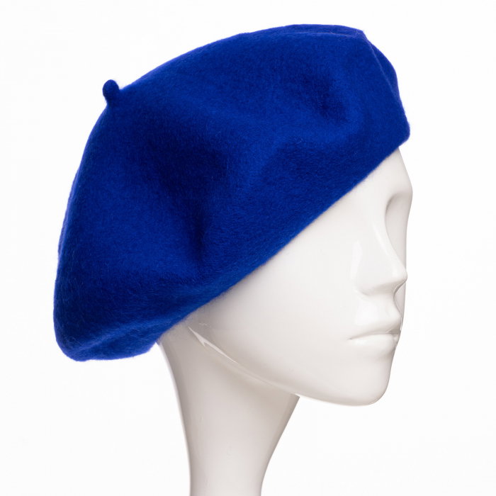 Bereta frantuzeasca din stofa groasa de lana, albastru electric