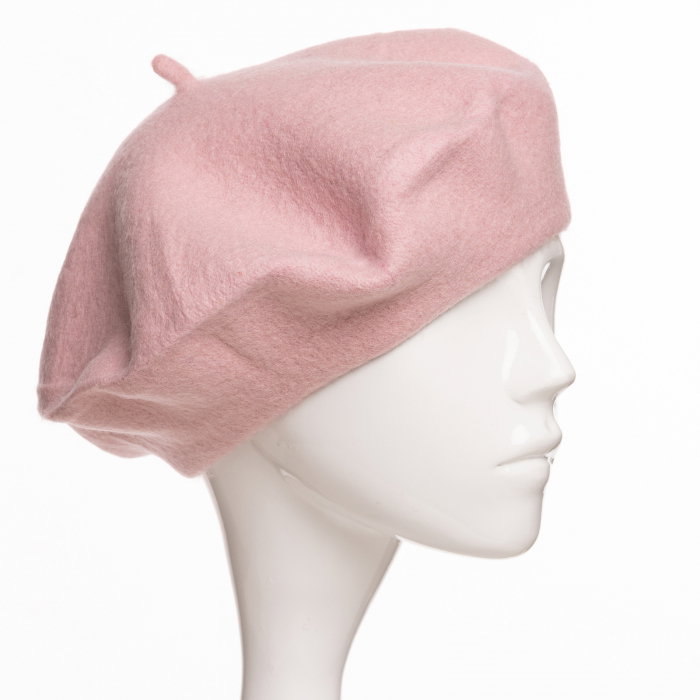 Bereta frantuzeasca din stofa groasa de lana, roz deschis