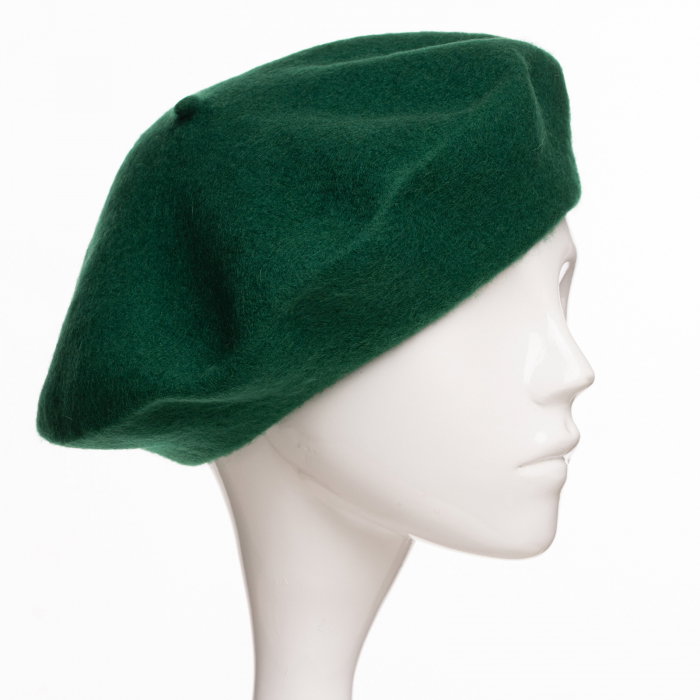 Bereta frantuzeasca din stofa groasa de lana, verde inchis