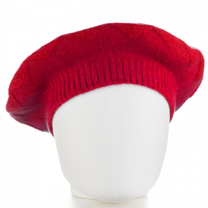 Comandă online o Bereta rosie cu model gen tricotaj cu romburi, din lana cu livrare rapidă prin curier sau la easybox!