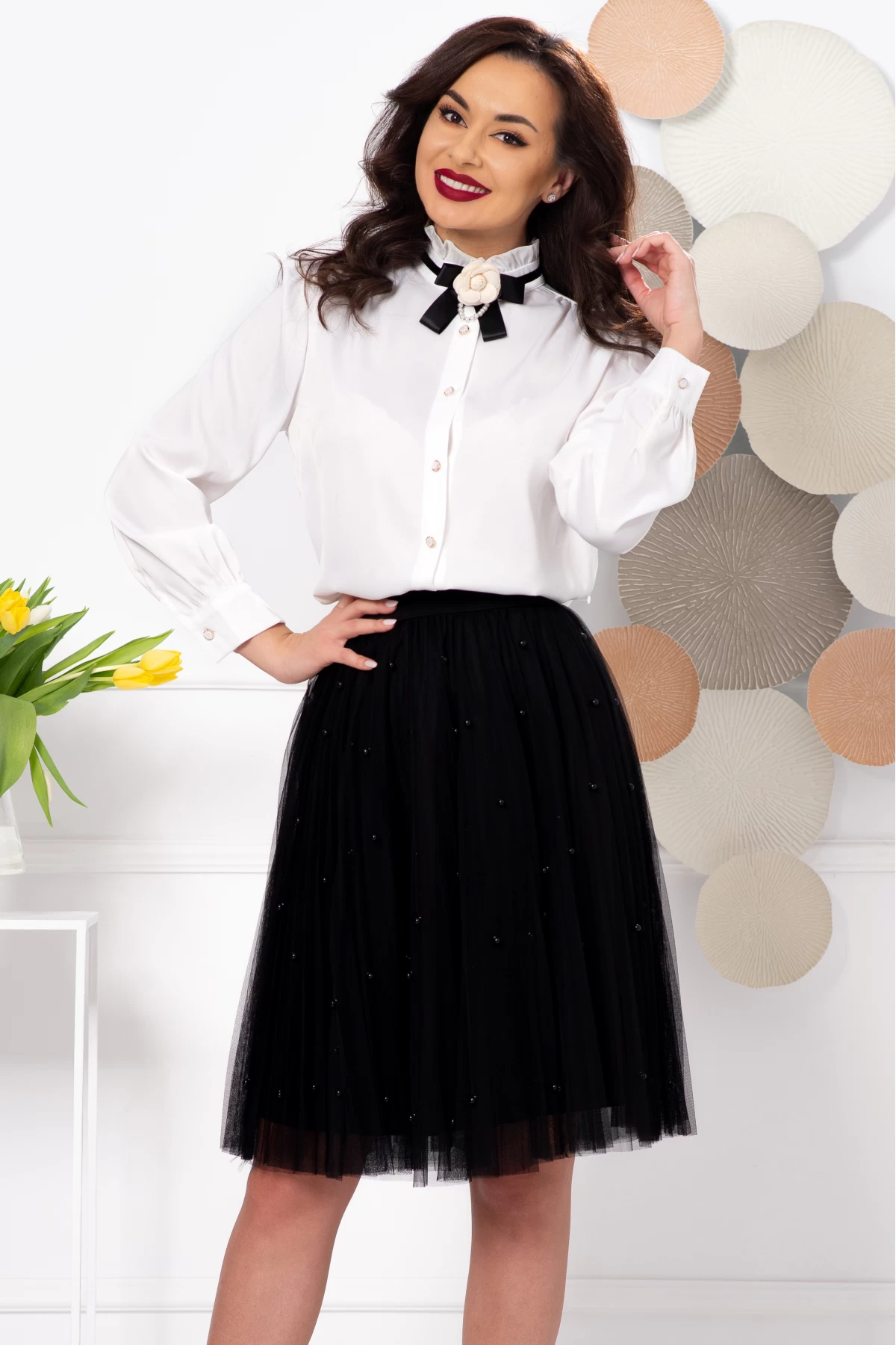 Bluza dama eleganta ecru cu guler cret si floare detasabila Culoare: ecruTextura: voal satinatCroi: dreptManeci lungiMansete lateInchidere cu nasturi aurii cu perlaBentita neagra din catifea pe gulerFloare 3D detasabilaGuler tip esarfa cu panglici din dantelaCompozitie: 97% poliester 3% spandexPotrivita marimilor 36 38 40* Echipa noastra face toate eforturile in a prezenta cat mai bine culorile produselor prezentate pe site insa culorile pot diferi de situatia reala si pot varia în functie de setarile monitorului/dispozitivului dvs!