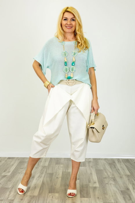 Comandă online o Bluza din bumbac tricotat cu maneca scurta kimono, verde menta cu livrare rapidă prin curier sau la easybox!