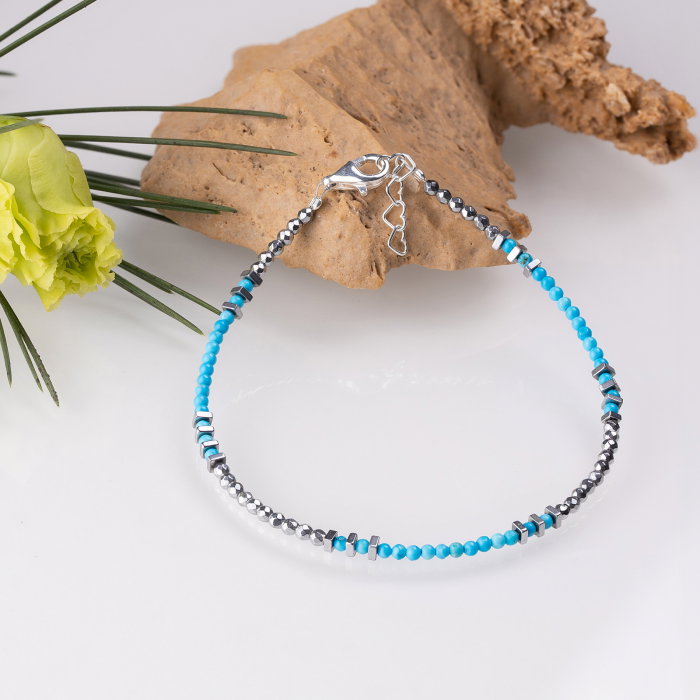 Comandă online o Bratara argint subtire din hematit argintiu si turcoaz 1.5mm cu livrare rapidă prin curier sau la easybox!
