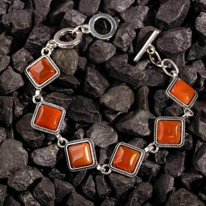 Comandă online o Bratara cu elemente rombice din piatra naturala de carneol cu livrare rapidă prin curier sau la easybox!