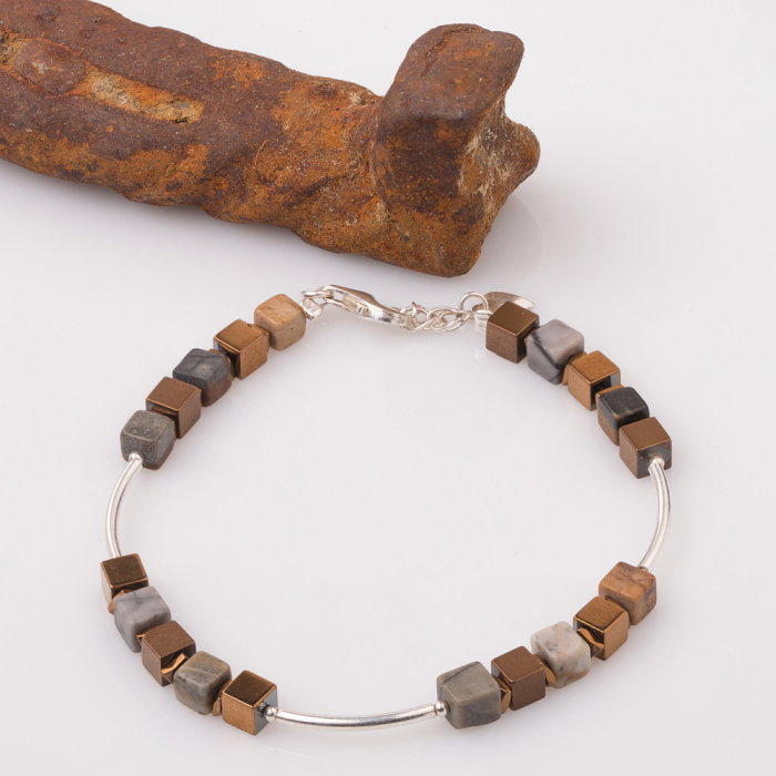 Comandă online o Bratara cu tuburi si serii de 5 cubulete jaspuri si hematit cu livrare rapidă prin curier sau la easybox!