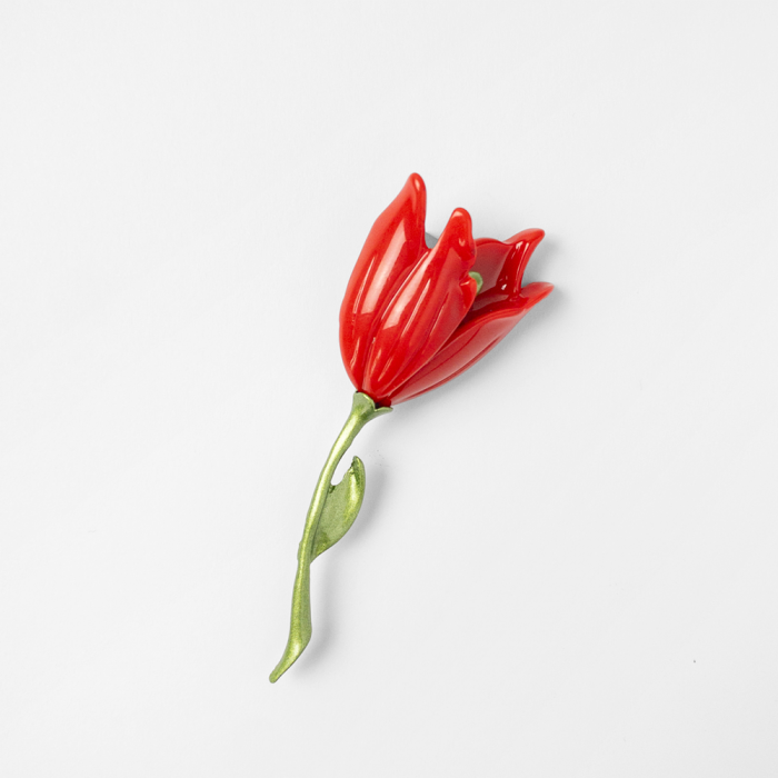 Brosa lalea rosie cu codita metalica verde