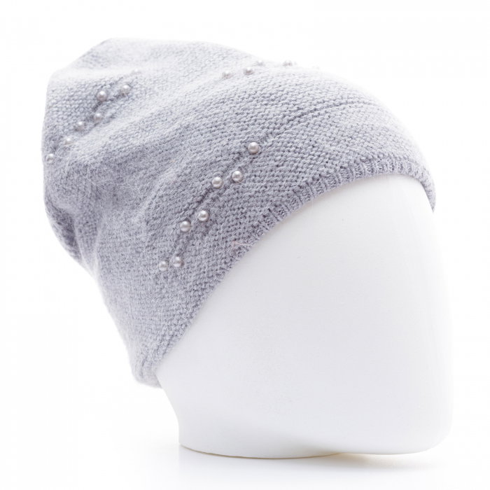 Caciula gri model tricotat cu perle fine aplicate, dublata in interior