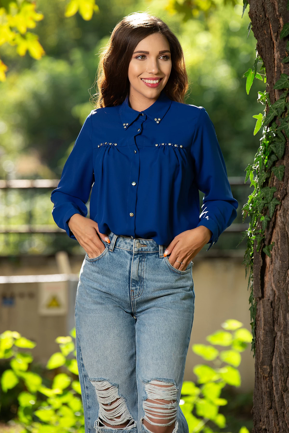Camasa dama office albastra din voal decorata cu strassuri Culoare: albastruCroi: dreptTextura: voalManeci lungi Mansete late cu nasture argintiuGuler decorat cu strassuriPliseuri in zona bustului conturate cu perle si strassuriInchidere frontala cu nasturi argintiiCompozitie: 97% poliester 3% licra* Echipa noastra face toate eforturile in a prezenta cat mai bine culorile produselor prezentate pe site insa culorile pot diferi de situatia reala si pot varia în functie de setarile monitorului/dispozitivului dvs!