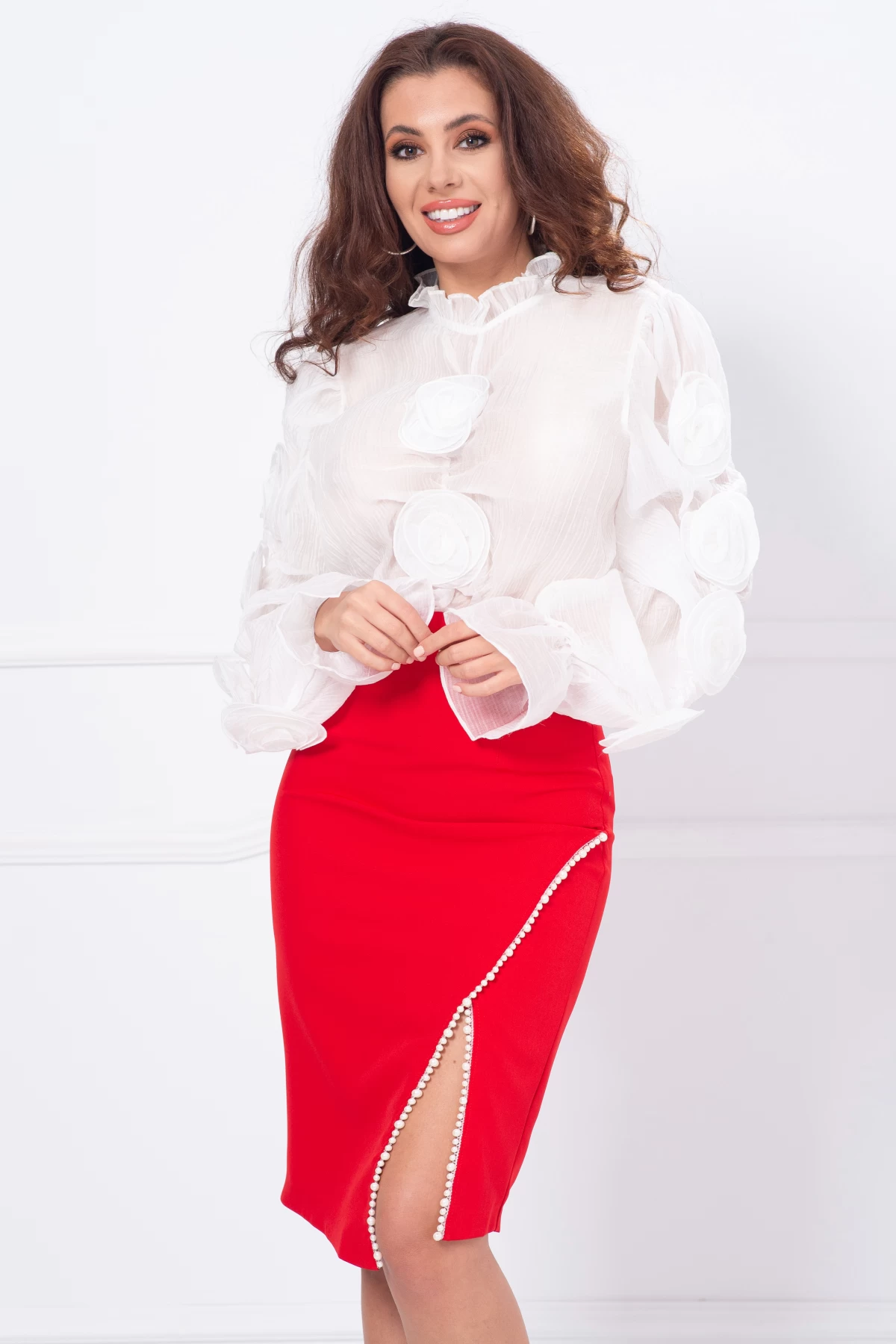 Camasa delicata alba din crep cu trandafiri 3D Culoare: albTextura: crepManeci lungi cu volan la terminatieManseta elasticaInchidere cu fermoar la spateGuler cu volan plisatTrandafiri 3D decorativiCompozitie: 100% poliesterPotrivit marimilor 36-40* Echipa noastra face toate eforturile in a prezenta cat mai bine culorile produselor prezentate pe site insa culorile pot diferi de situatia reala si pot varia în functie de setarile monitorului/dispozitivului dvs!