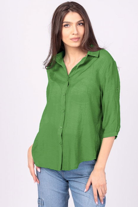 Comandă online o Camasa subtire, verde, cu guler clasic, maneca lunga si buzunar pe piept cu livrare rapidă prin curier sau la easybox!