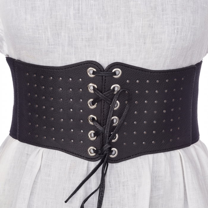 Datorita elasticului, cureaua se potriveste mai multor marimi Inchidere cu capse pe spate Dimensiuni: latime maxima fata 12 cm, circumferinta minima 64 cm, circumferinta maxima 72 cm Nuantele pot varia usor in realitate, in functie de lumina…