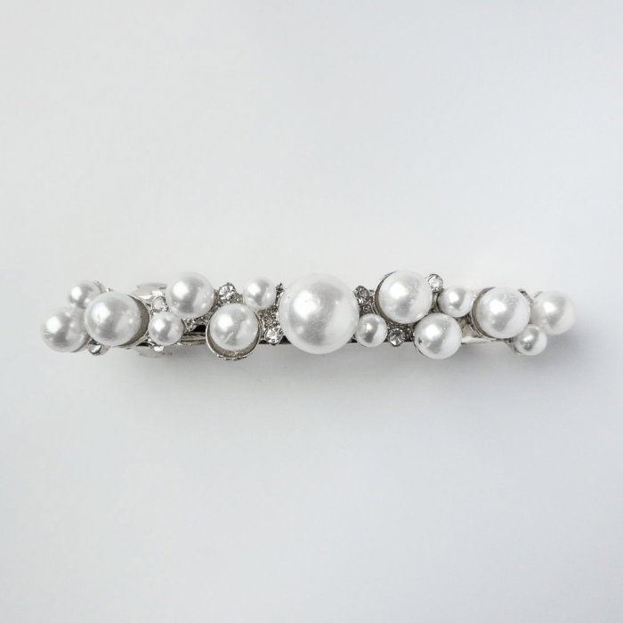 Clama medie metalica argintie cu perle sintetice albe de diferite marimi