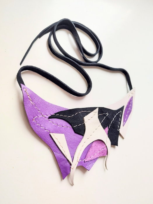 Comandă online o Colier asimetric din piele naturala,nuante alb si mov cu livrare rapidă prin curier sau la easybox!