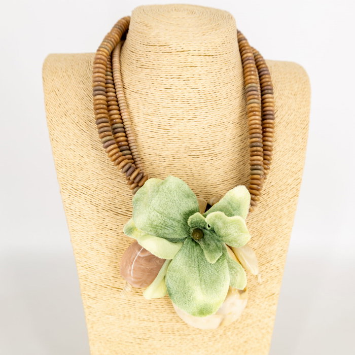 colier scurt cu elemente geormetrice si floare decorativa verde materiale: textil, rasina, metal comun încuietoare confortabilă la spate Dimensiuni: lungime: 31 cm lățimea a trei rânduri de mărgele: aprox. 3 cm lățimea…