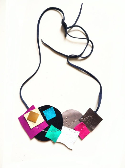 Colier statement multicolor din piele naturala asimetric, unicat