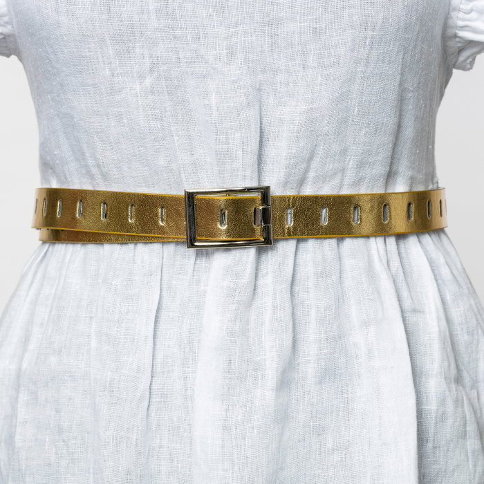 Catarama metalica ataplicata pe piele ecologica Material: poliester Dimensiuni: lungime 105 cm, latime 2.5 cm Nuantele pot varia usor in realitate, in functie de lumina si setarile fiecarui ecran.