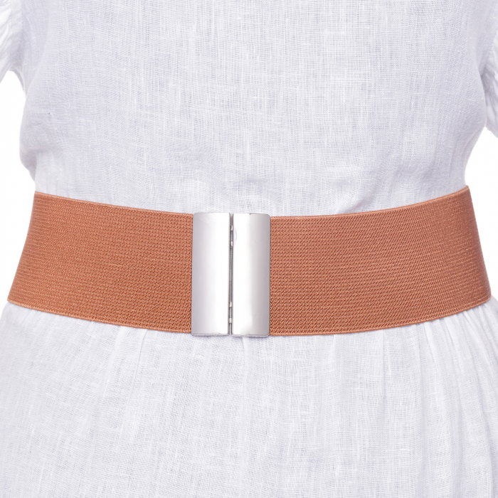 Comandă online o Curea camel 6 cm latime din material elastic, cu catarama argintie cu livrare rapidă prin curier sau la easybox!