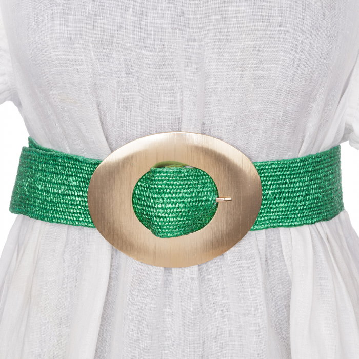 Comandă online o Curea elastica verde din impletitura cu latime de 5 cm, catarama aurie cu livrare rapidă prin curier sau la easybox!