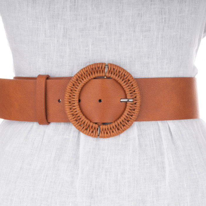 Catarama metalica cu diametru de 9 cm aplicata pe piele ecologica Material: piele ecologica Dimensiuni: lungime 85 cm, latime 5 cm lungime…