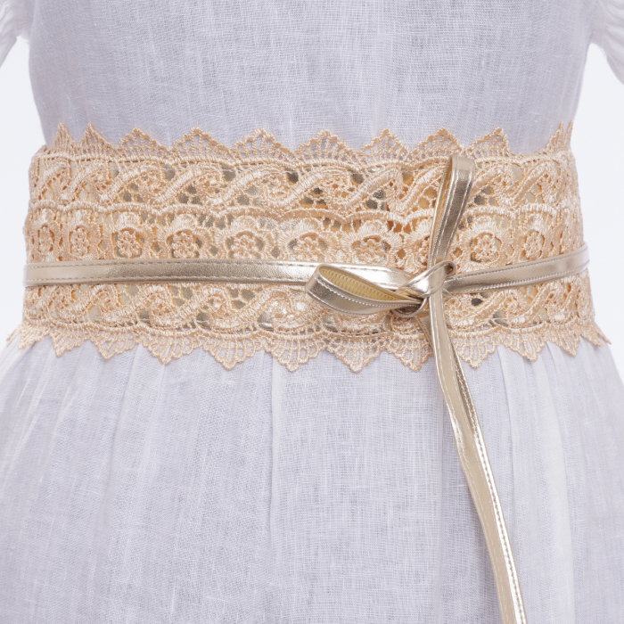 Comandă online o Curea lata de 10 cm petrecuta cu aplicatie din broderie textila, aurie cu livrare rapidă prin curier sau la easybox!