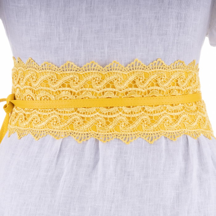 Comandă online o Curea lata de 10 cm petrecuta galbena cu aplicatie din broderie textila cu livrare rapidă prin curier sau la easybox!
