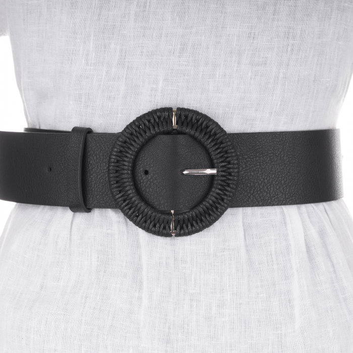 Comandă online o Curea lata neagra de 5 cm, din piele ecologica cu catarama metalica argintie imbracata in impletitura cu livrare rapidă prin curier sau la easybox!