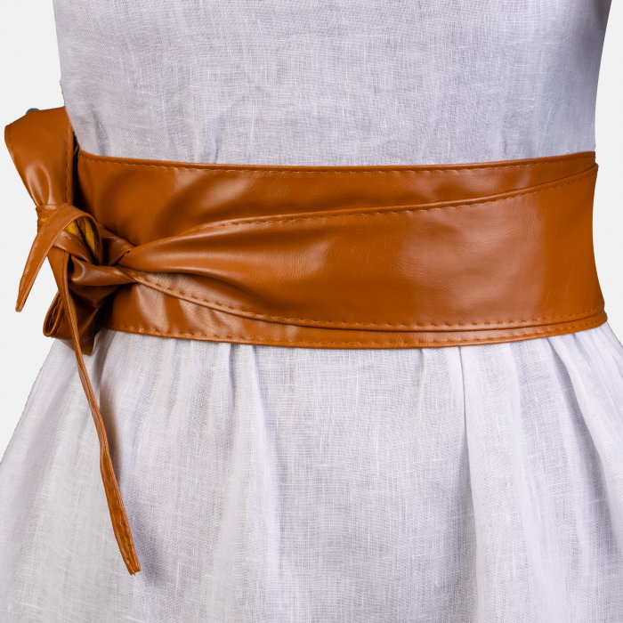 Cureaua este lunga cu o parte centrala lata de 9 cm si se subtiaza spre capete Are o fanta cu ajutorul careia cureaua se leaga frumos petrecut in jurul taliei Material : piele naturala Dimensiuni: Partea centrala are lungime 53 cm, partile…