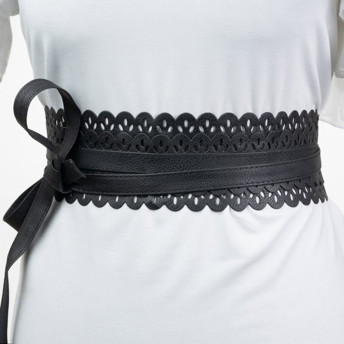 Curea lata petrecuta neagra, din piele ecologica cu model decupat