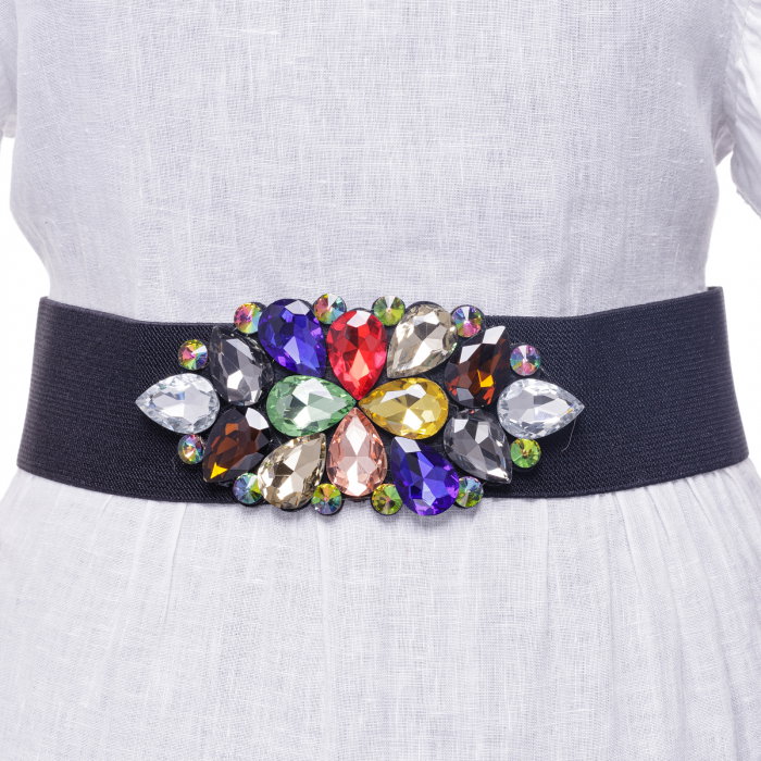 Sistem de inchidere cu 2 capse la spate Material: poliester si sticla Dimensiuni: lungime 68-73 cm, latime 6 cm, dimensiuni decoratiune: 15 x 7 cm Nuantele pot varia usor in realitate, in functie de lumina si setarile fiecarui ecran.