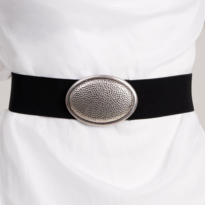 Datorita materialului elastic, cureaua se potriveste mai multor marimi Inchidere sub catarama, in fata Descriere dimensiuni: 73 cm: latime 5 cm, circumferinta minima 70 cm, circumferinta maxima 110 cm, paftaua are 6.5 x 9 cm Nuantele…