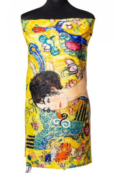 Esarfa cashmere cu doua fete cu imprimeu dupa pictura moderna cu cap de femeie