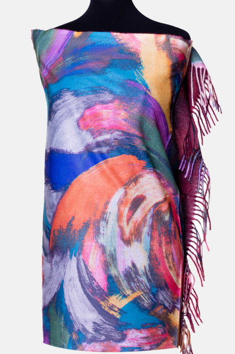 Comandă online o Esarfa cashmere cu model pensulat in nuante intense de turcoaz, roz si mov cu livrare rapidă prin curier sau la easybox!