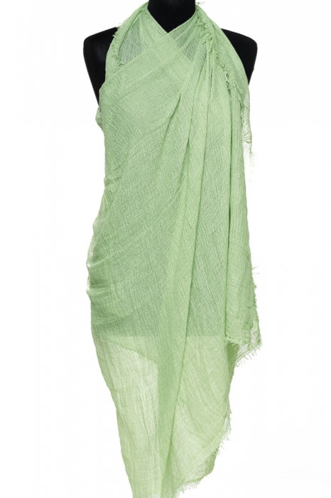 Esarfa dreptunghiulara tip pareo cu aspect creponat din vascoza, verde deschis