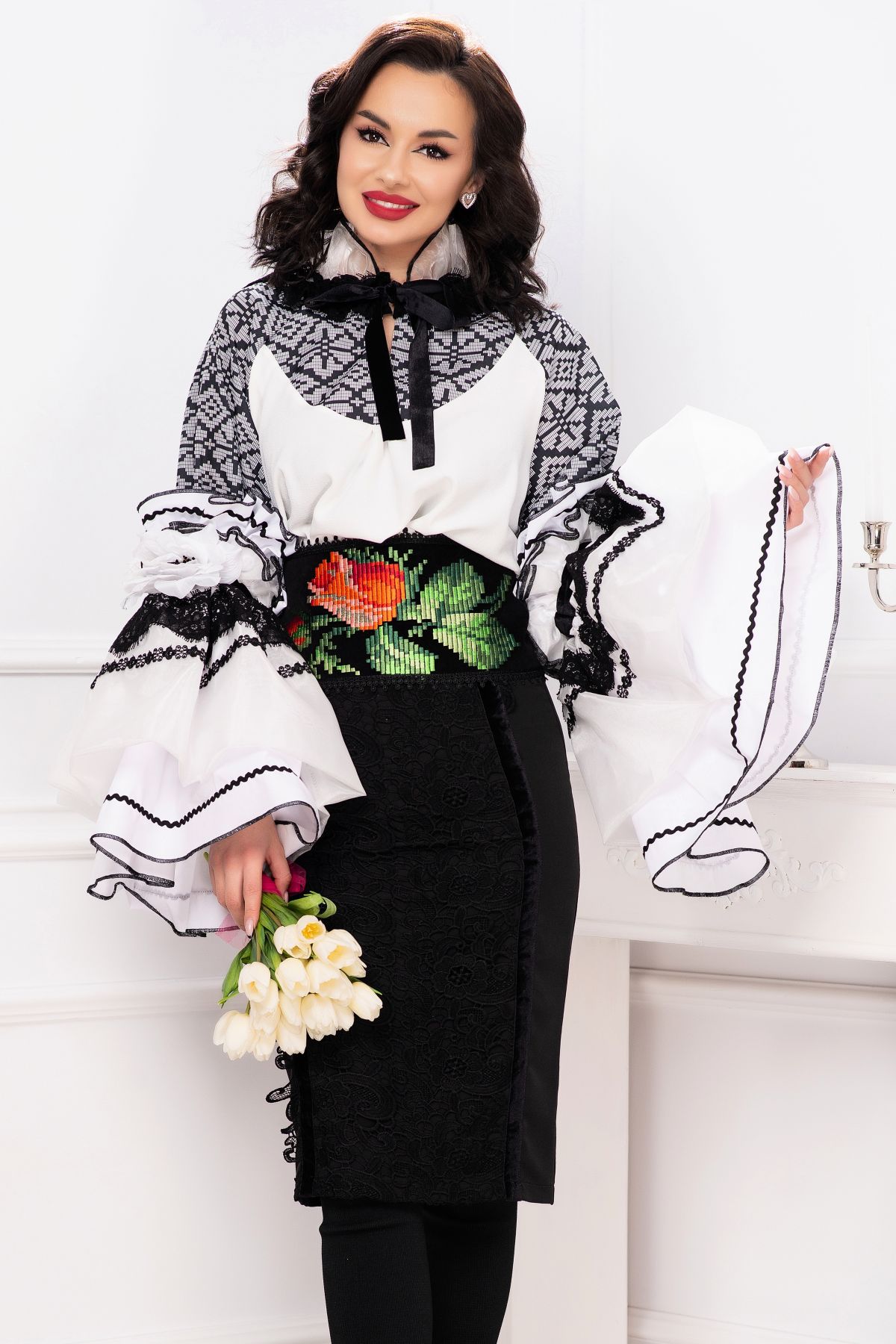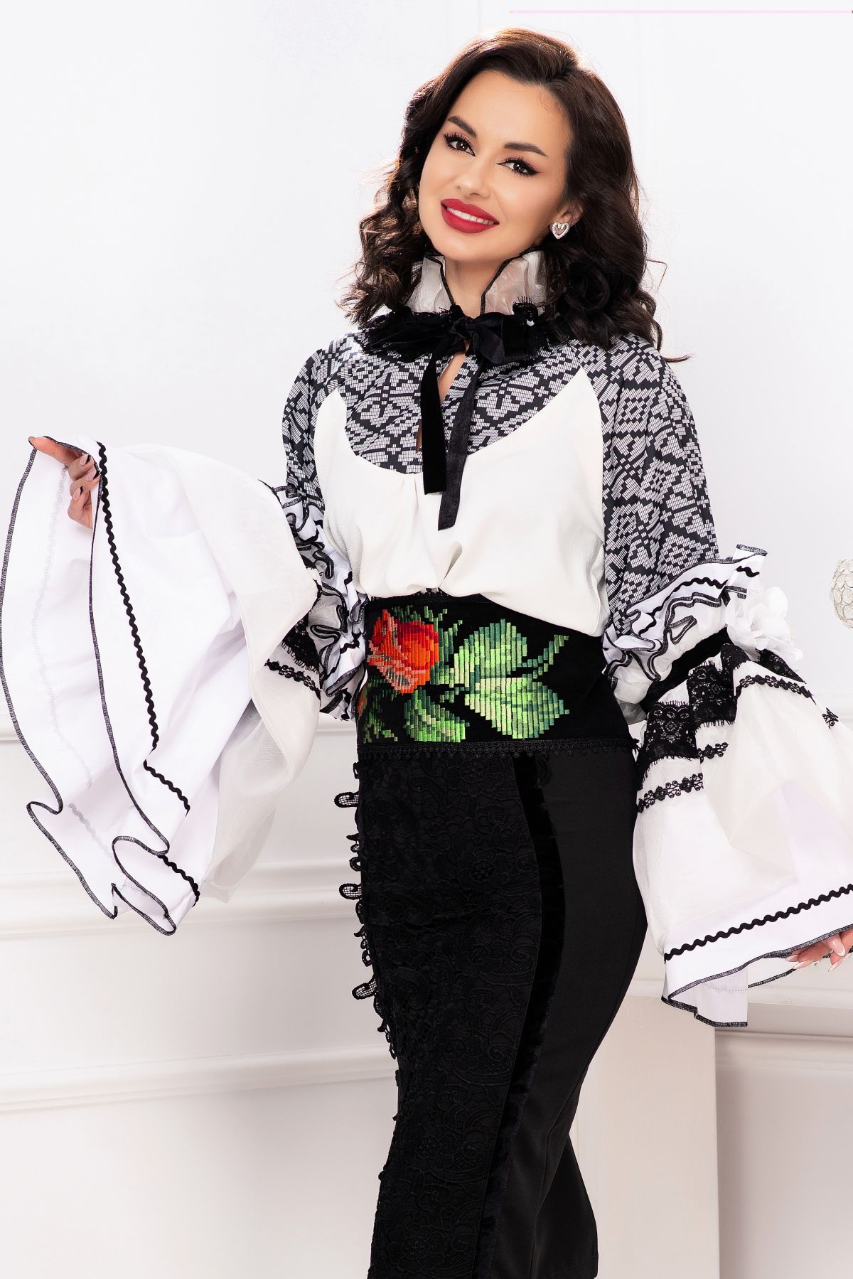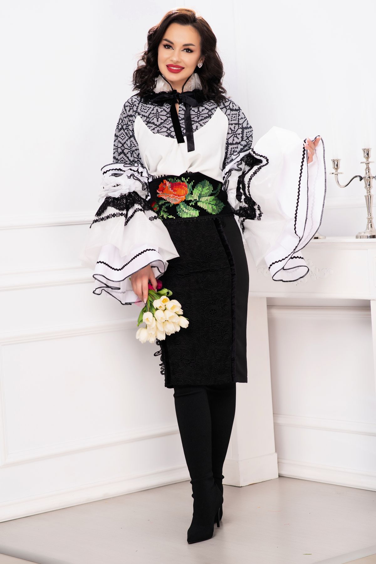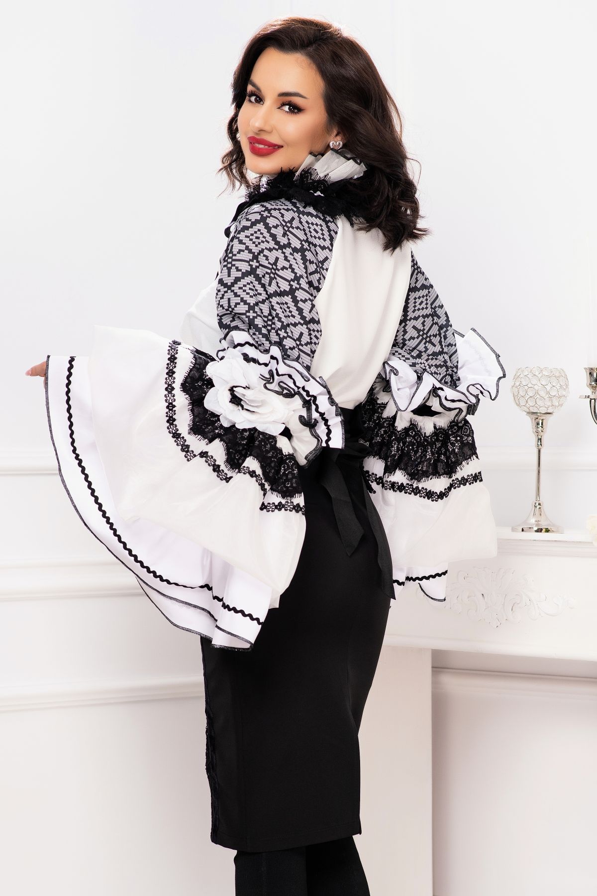 Fusta eleganta conica Venezia cu dantela lata si benzi din catifea ; Culoare: negru ; Talie inalta ; Croi conic ; Inchidere cu fermoar auriu la spate ; Crapatura la spate ; Banda lata din dantela neagra aplicata frontal ; Prezinta dublura neagra ; Benzi din catifea care delimiteaza dantela ; Compozitie: 80% poliester 17% vascoza 3% elastan ; Captusala: 100% poliester ; Fabricat in Romania ; * Echipa InPuff face toate eforturile in a prezenta cat mai bine culorile produselor prezentate pe site insa culorile pot diferi de situatia reala si pot varia în functie de setarile monitorului/dispozitivului dvs!