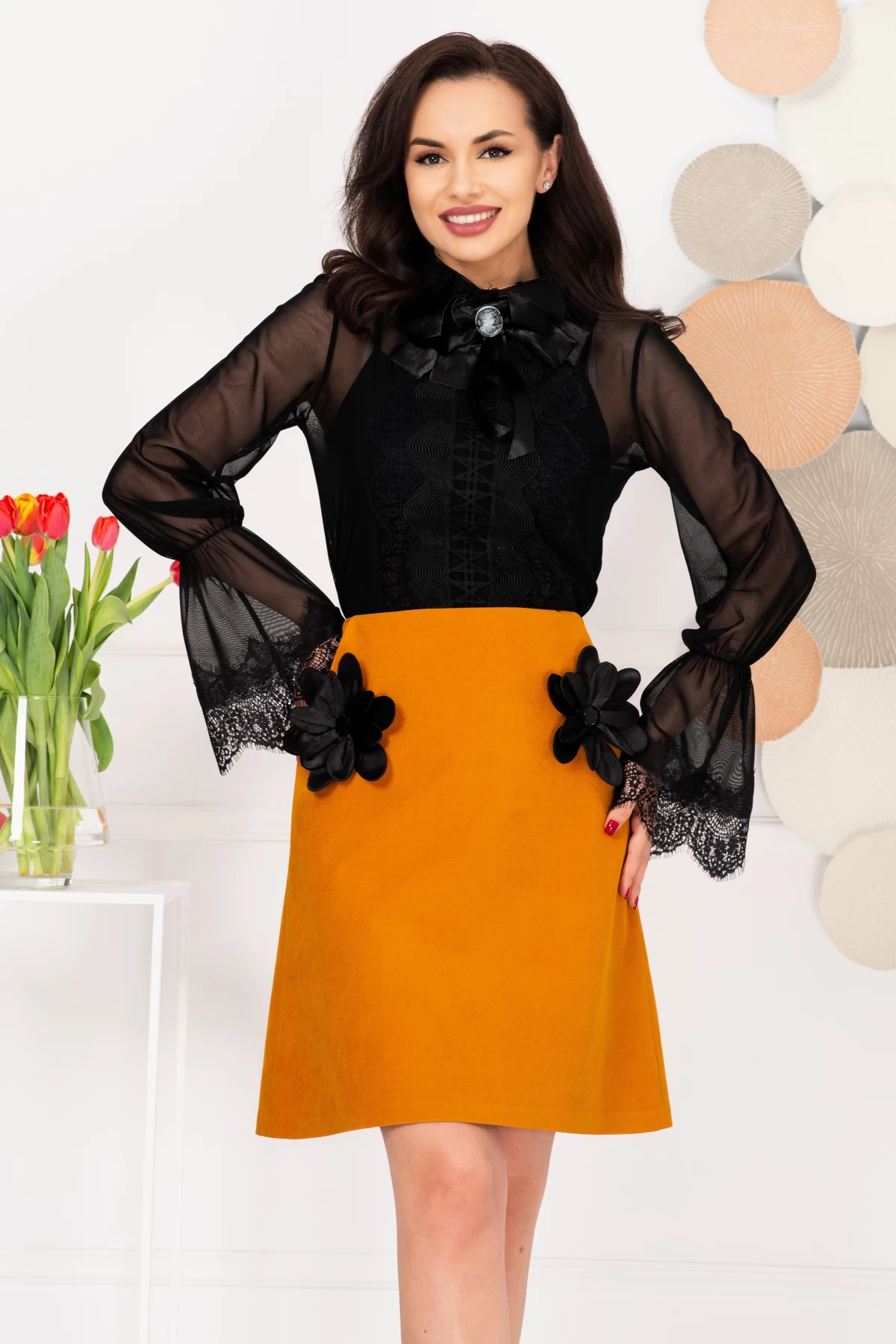 Fusta in clos mustar cu flori 3D handmade Culoare: mustarTextura: catifeaCroi: closFara dubluraTalie inaltaBuzunare laterale functionaleInchidere cu fermoar la spateFlori 3D nedetasabile lucrate manualCompozitie: 80% poliester 20% bumbacFabricat in Romania* Echipa noastra face toate eforturile in a prezenta cat mai bine culorile produselor prezentate pe site insa culorile pot diferi de situatia reala si pot varia în functie de setarile monitorului/dispozitivului dvs!