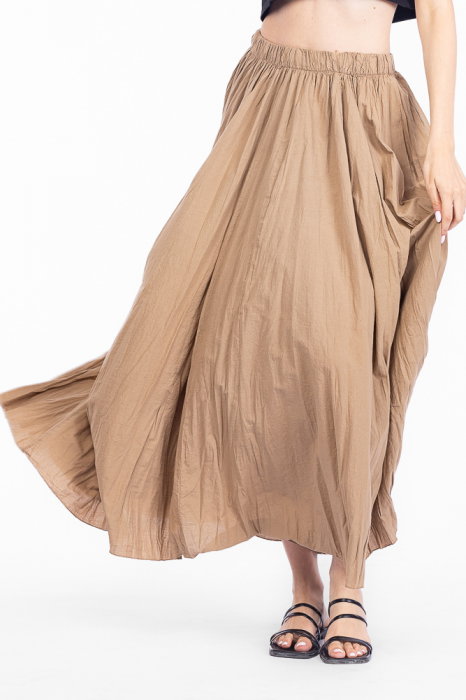 Fusta lunga, ampla, clos, din bumbac creponat, camel