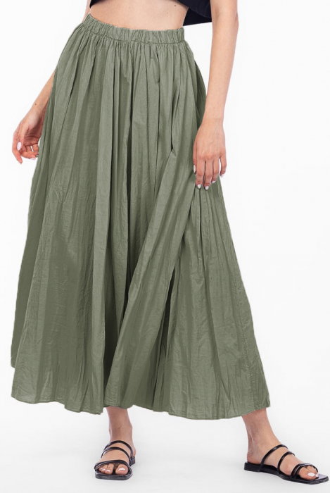 Comandă online o Fusta lunga, ampla, clos, din bumbac creponat, kaki cu livrare rapidă prin curier sau la easybox!
