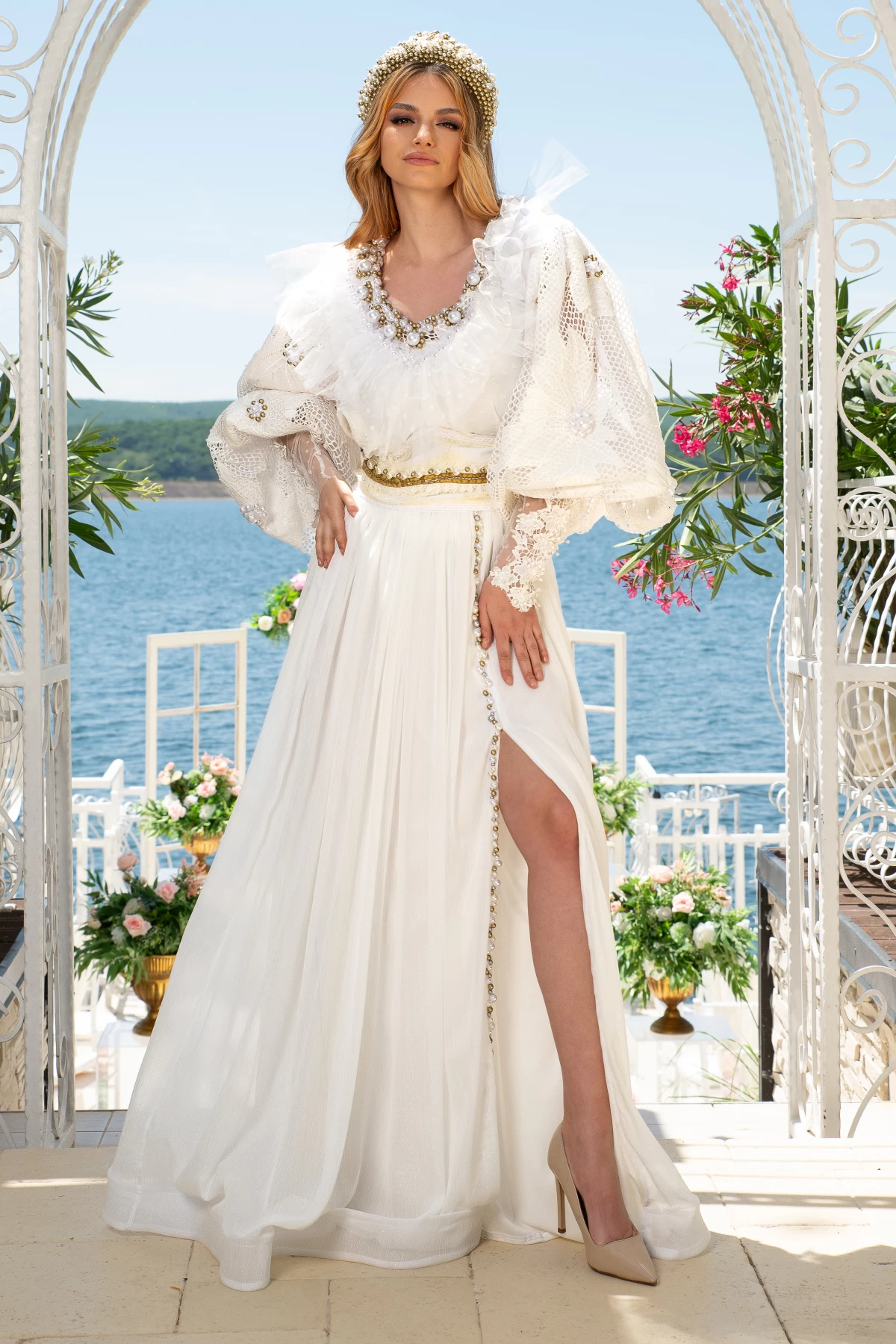 Fusta lunga eleganta alba din voal fin Legendaria by Venezia