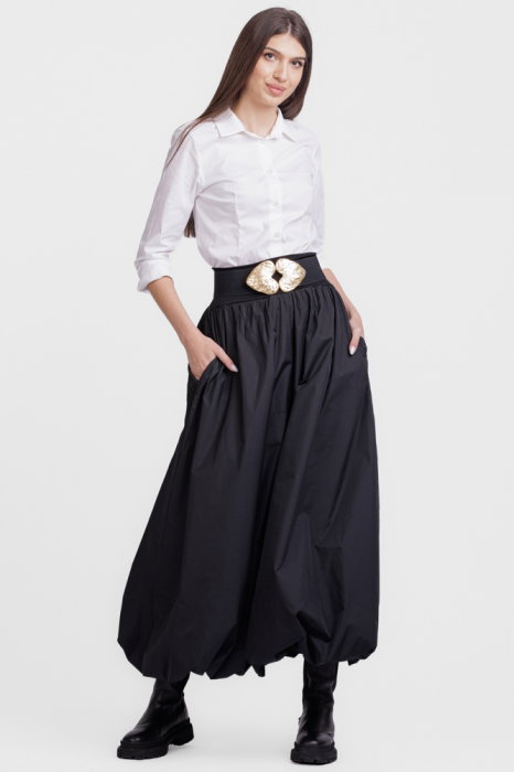 Are buzunare laterale ascunse. In talie are o banda de licra elastica, ce o face potrivita pentru mai multe marimi. Are talie unica si se potriveste pentru marimile: M,L,XL Material: in mercerizat, 95% in, 5% elastan Dimensiun: talie 60-90 cm, lungime…