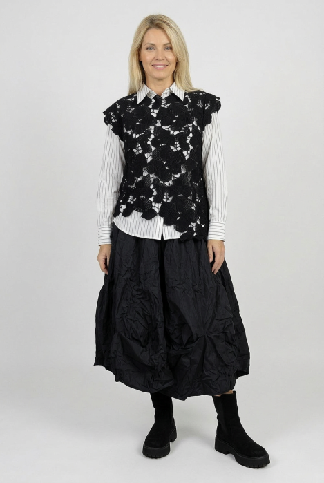 Fusta midi ampla cu fronseuri si buzunare din tafta de vascoza, neagra