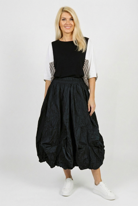 Comandă online o Fusta midi ampla din bumbac cu fronseuri si buzunare, neagra cu livrare rapidă prin curier sau la easybox!