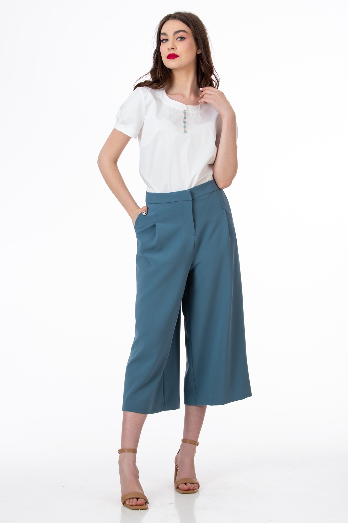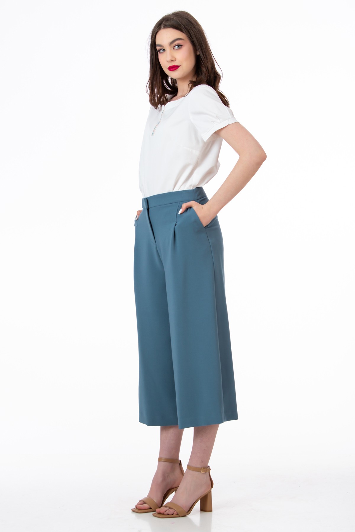 Fusta pantalon Britney din stofa fina, buzunare laterale si refileti la spate.