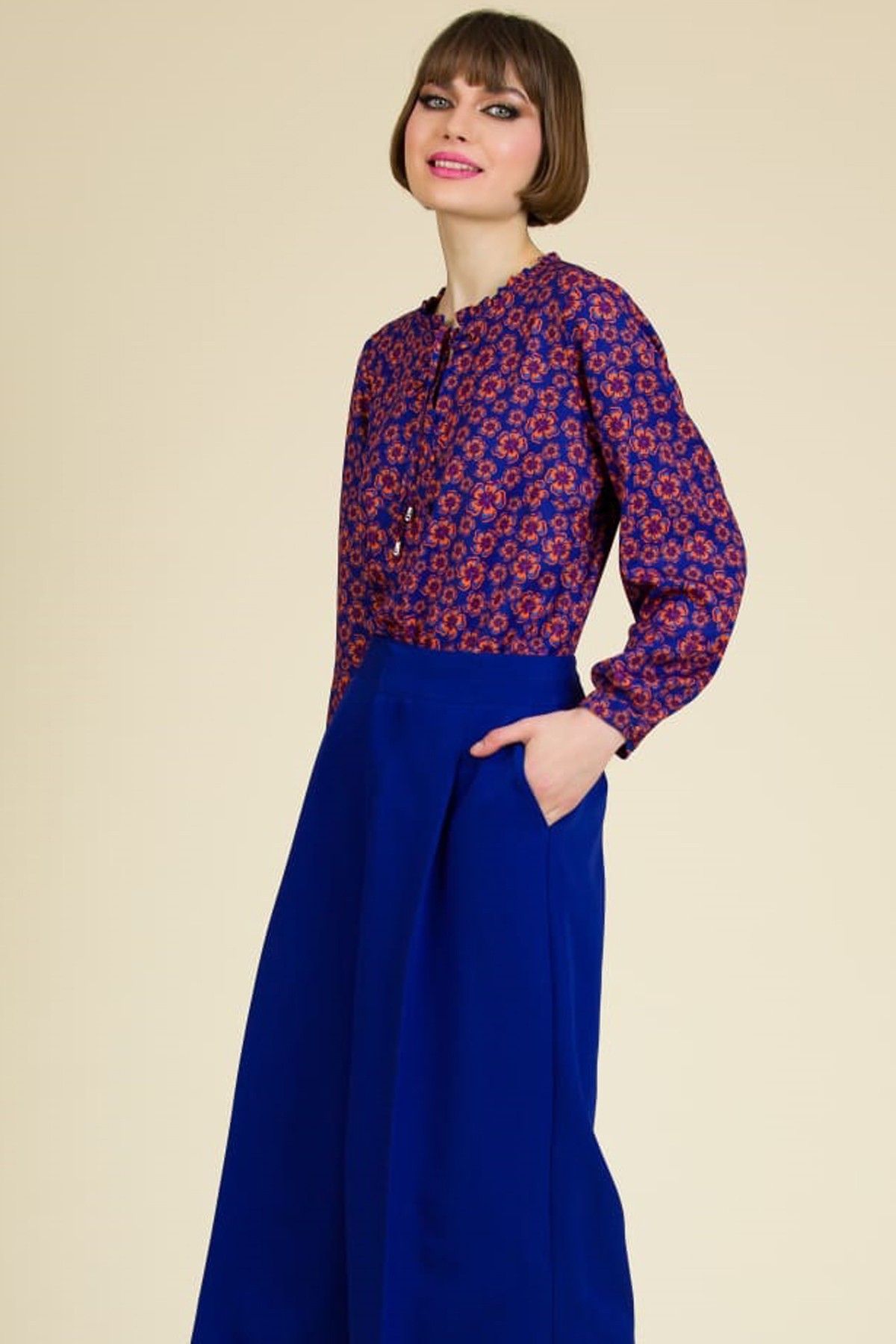 Fusta pantalon Chloe din stofa fina, croi feminin cu pense si buzunare laterale.