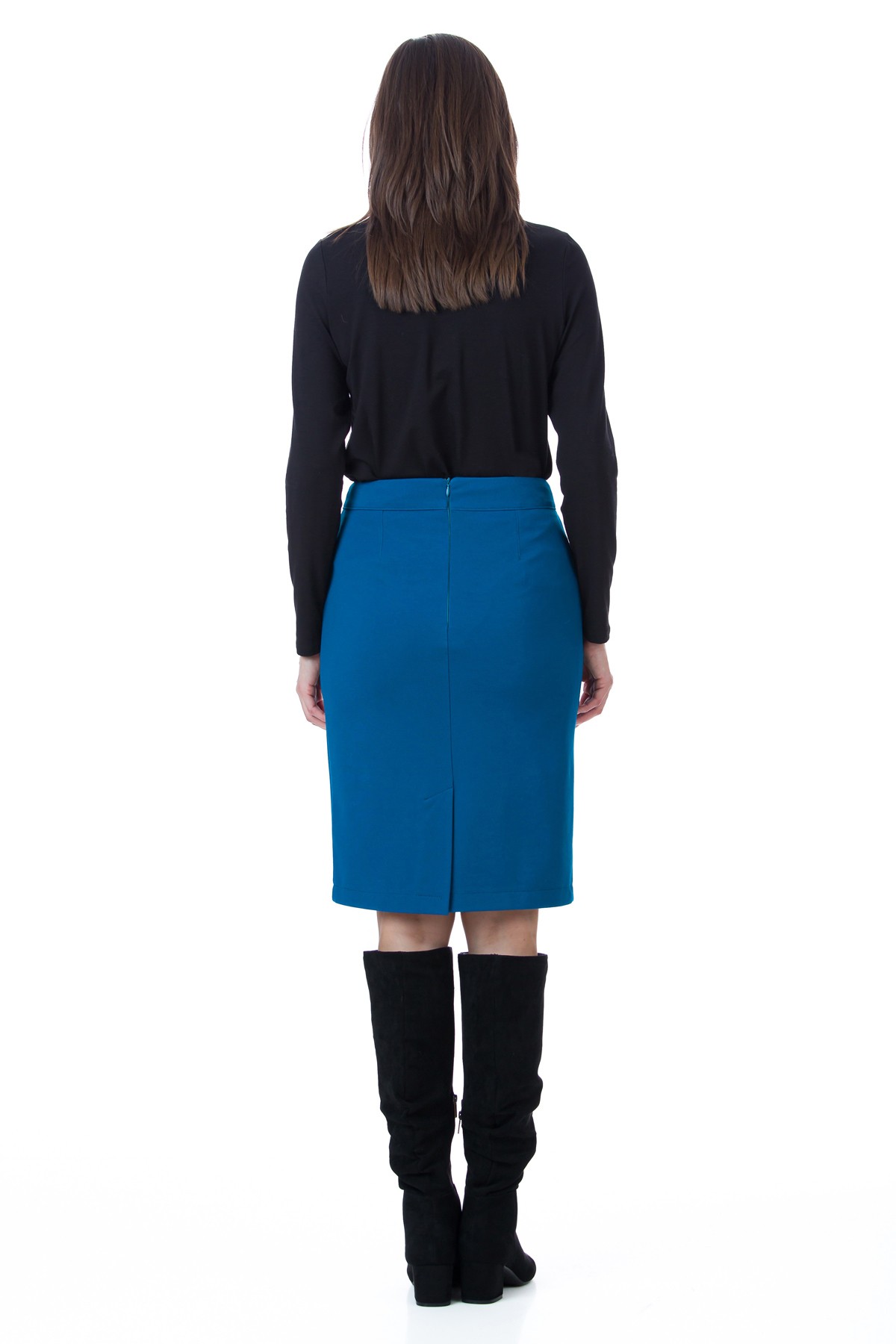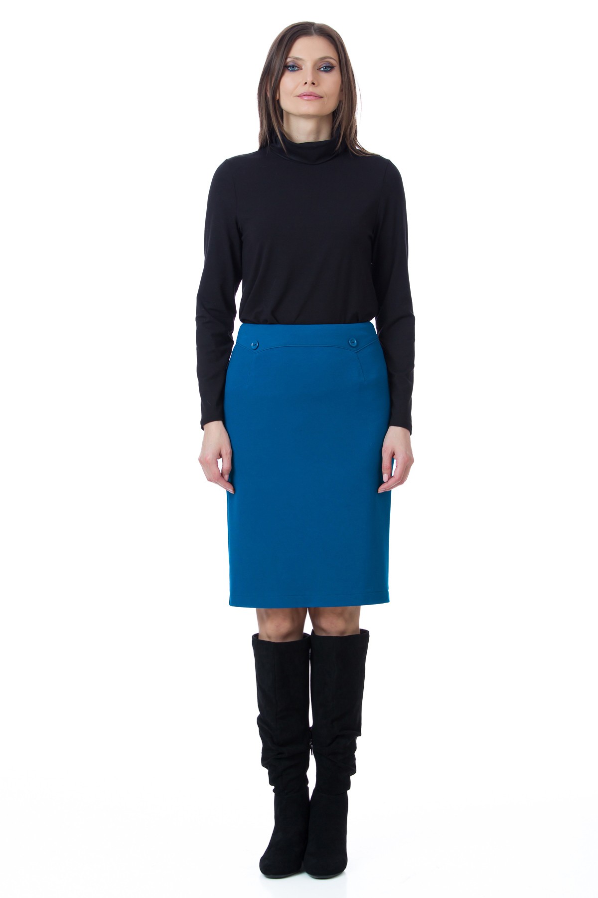 Fusta Claudie din ponte, forma pencil cu slit la spate si nasturi decorativi in betelia fancy.
