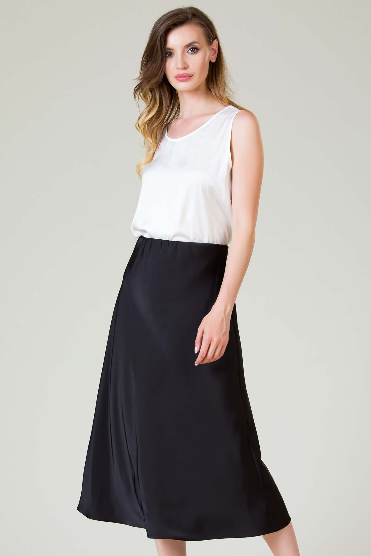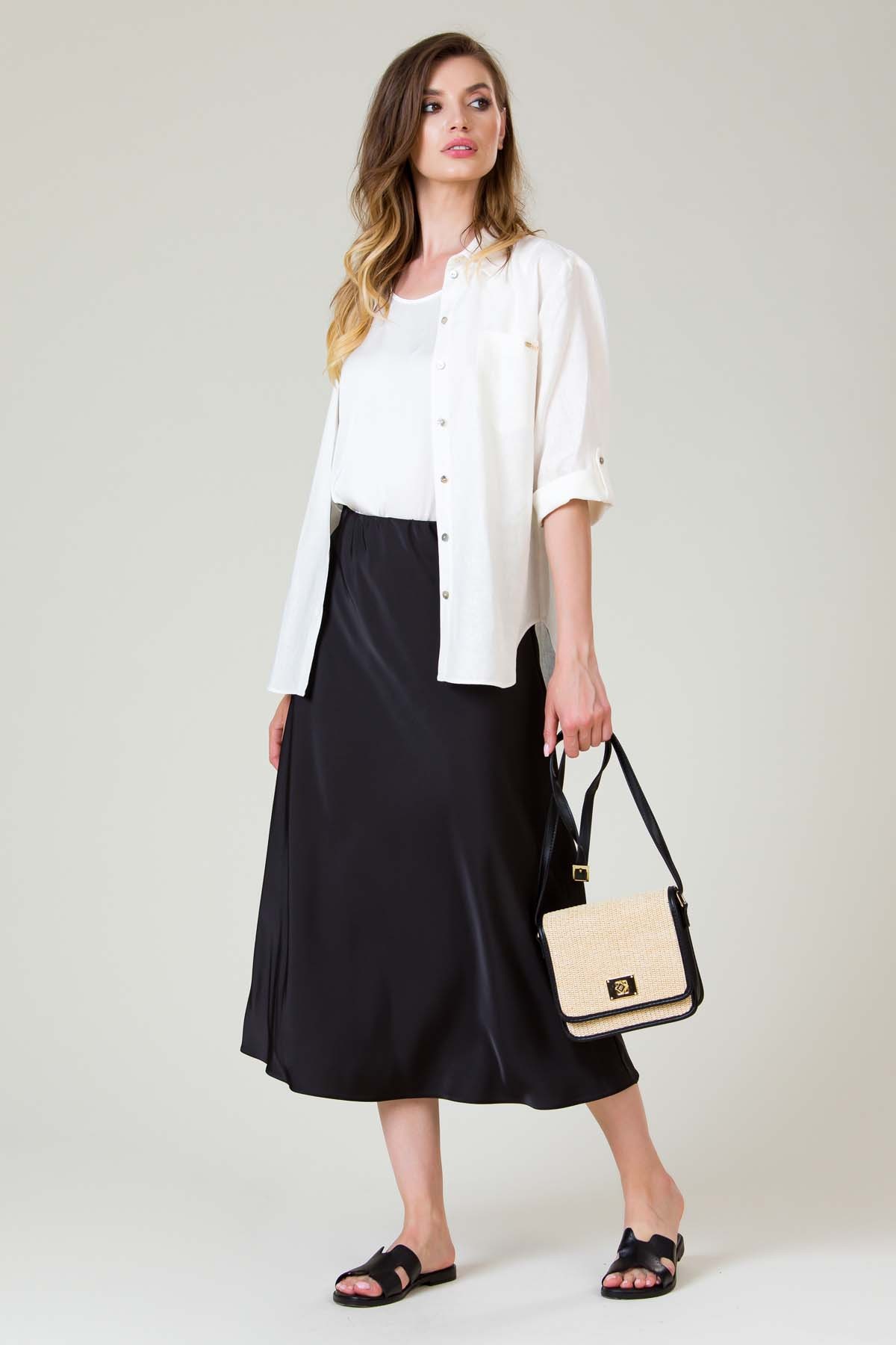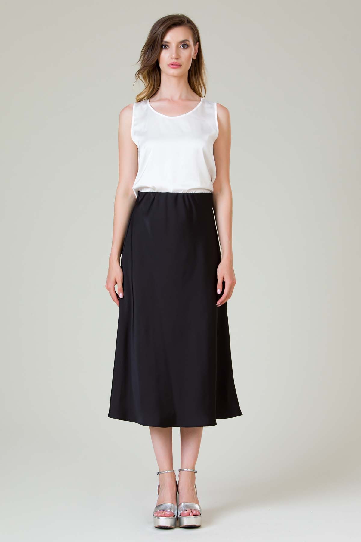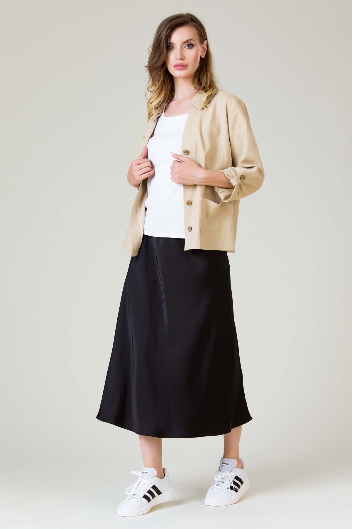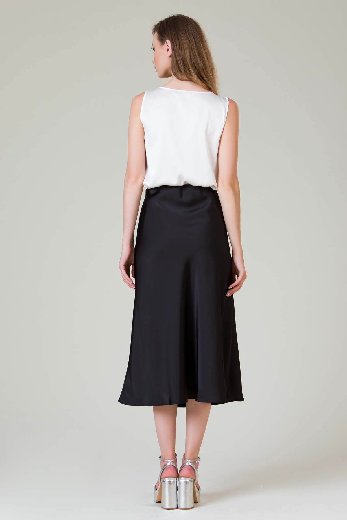 Fusta fluida Lesly din satin, croita pe bie cu talie elastica.