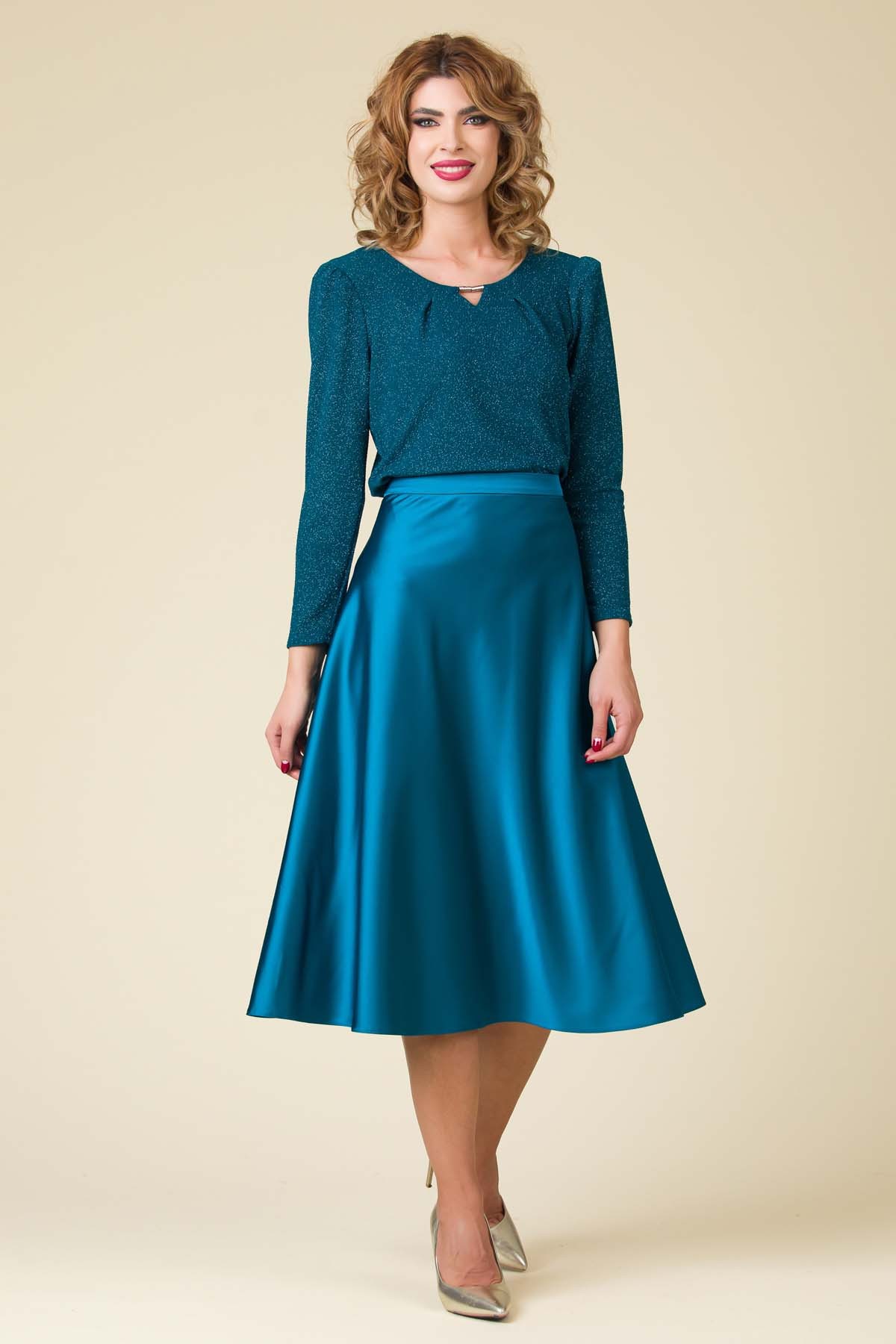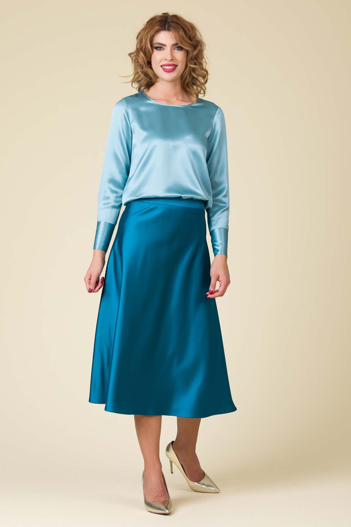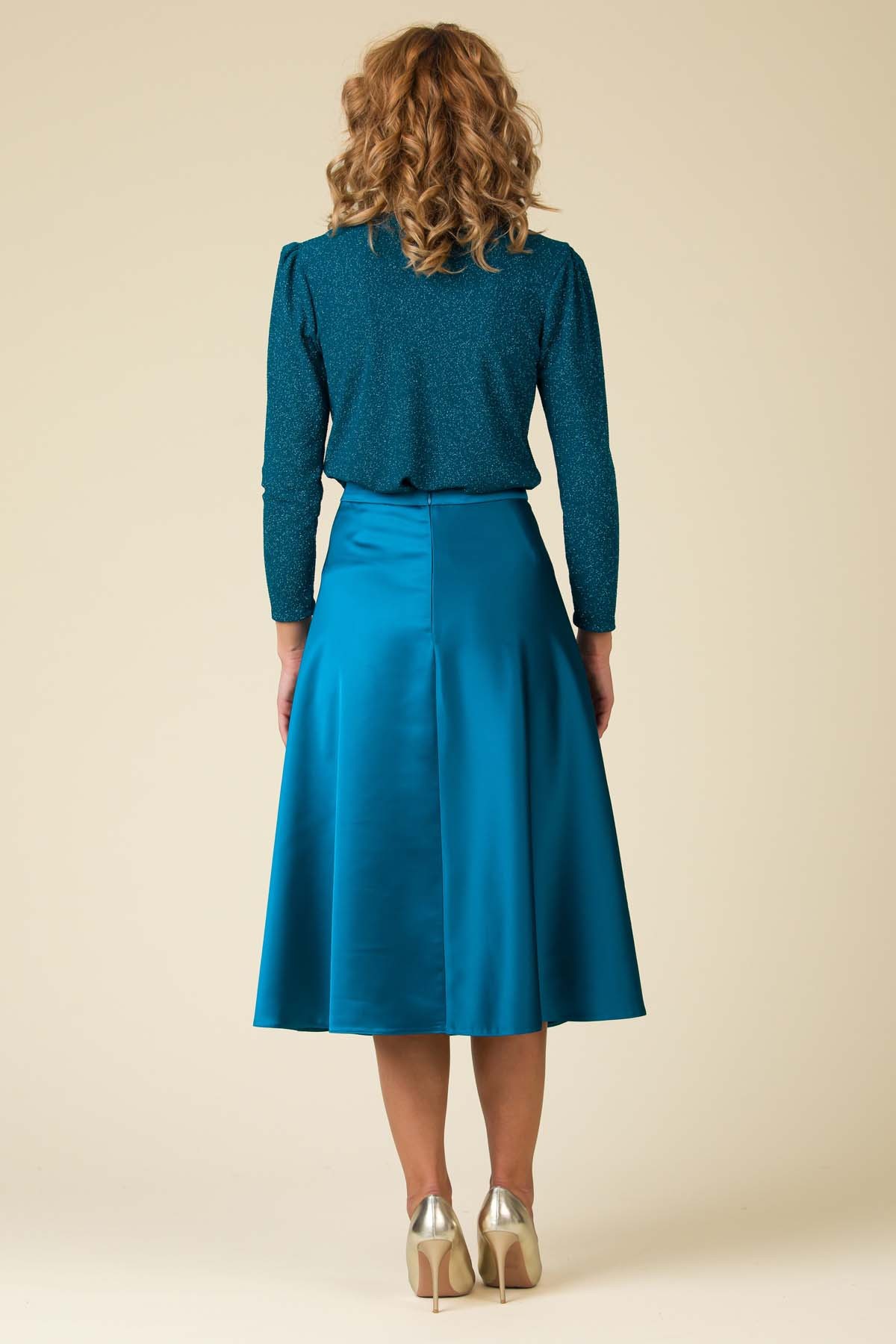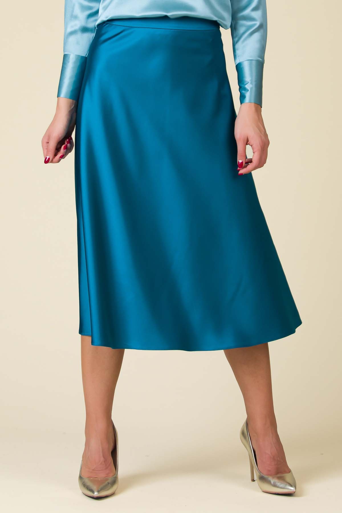 Fusta Nora din satin plin, croiala clos cu betelie.