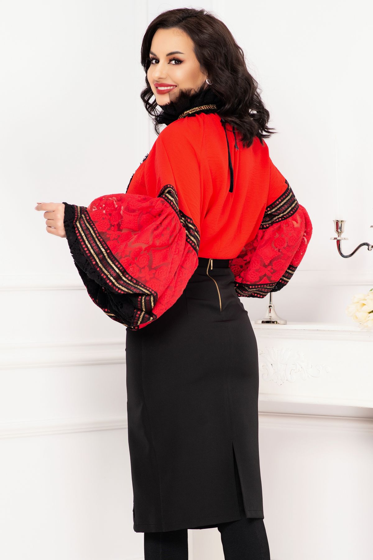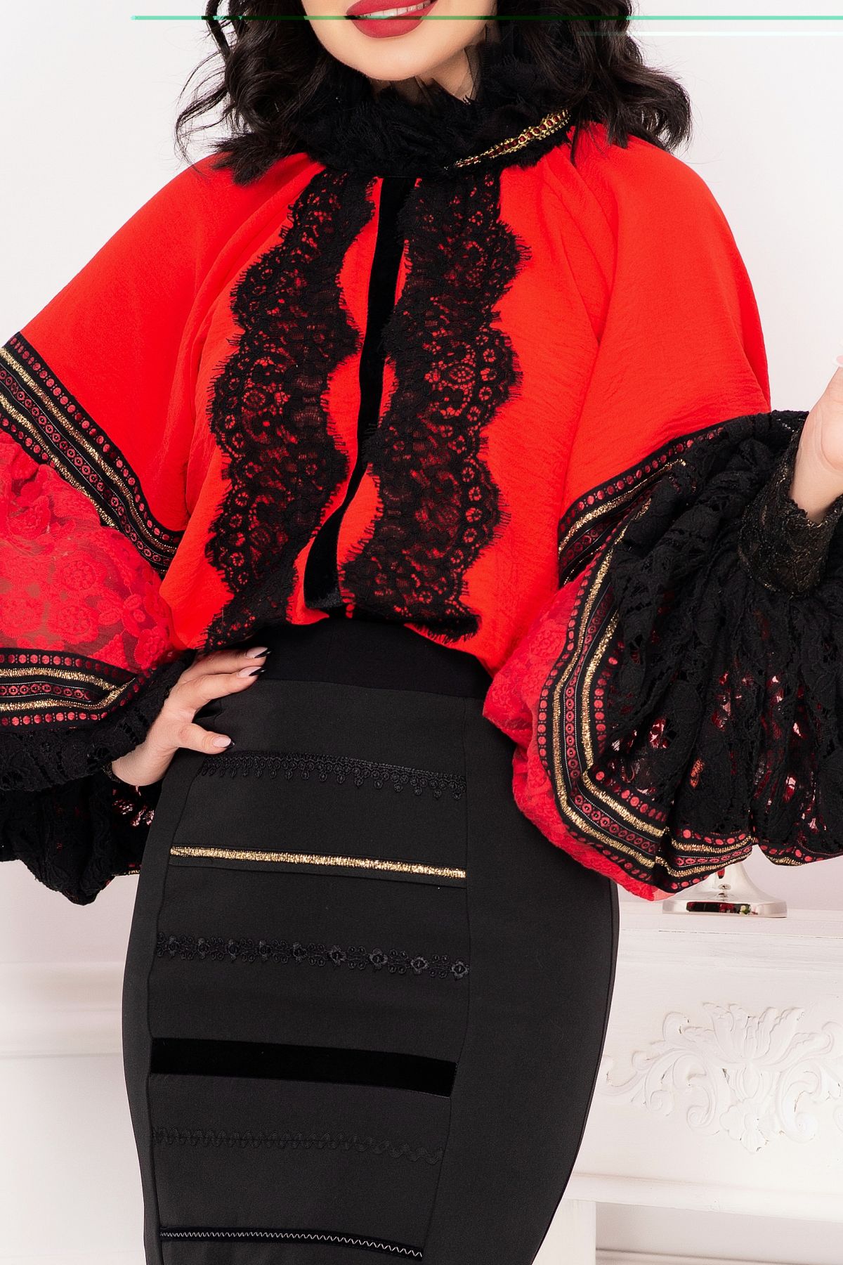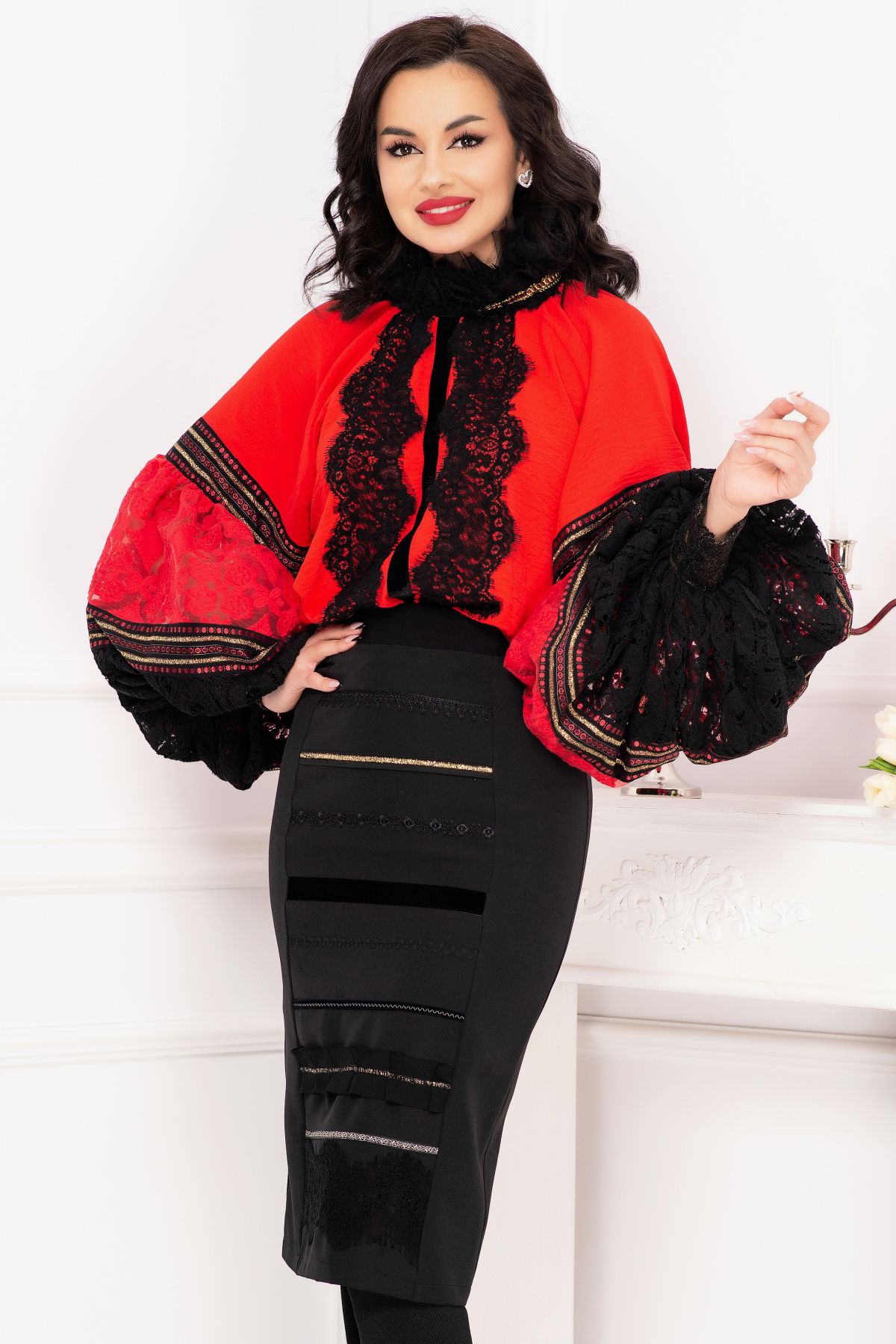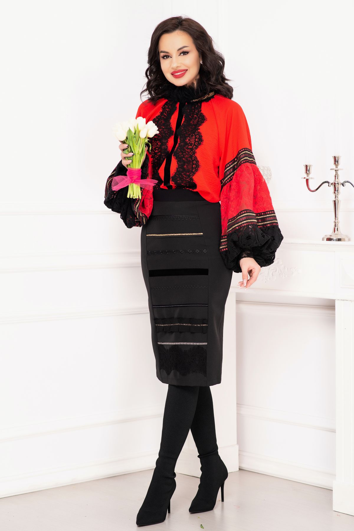 Fusta traditionala Venezia neagra cu fota ; Culoare: negru ; Talie inalta ; Croi conic ; Inchidere cu fermoar auriu la spate ; Crapatura la spate ; Fota in partea din fata ; Prezinta dublura neagra ; Dantela neagra la terminatie ; Benzi decorative traditionale aplicate pe fota ; Compozitie: 80% poliester 17% vascoza 3% elastan ; Captusala: 100% poliester ; Fabricat in Romania ; * Echipa InPuff face toate eforturile in a prezenta cat mai bine culorile produselor prezentate pe site insa culorile pot diferi de situatia reala si pot varia în functie de setarile monitorului/dispozitivului dvs!